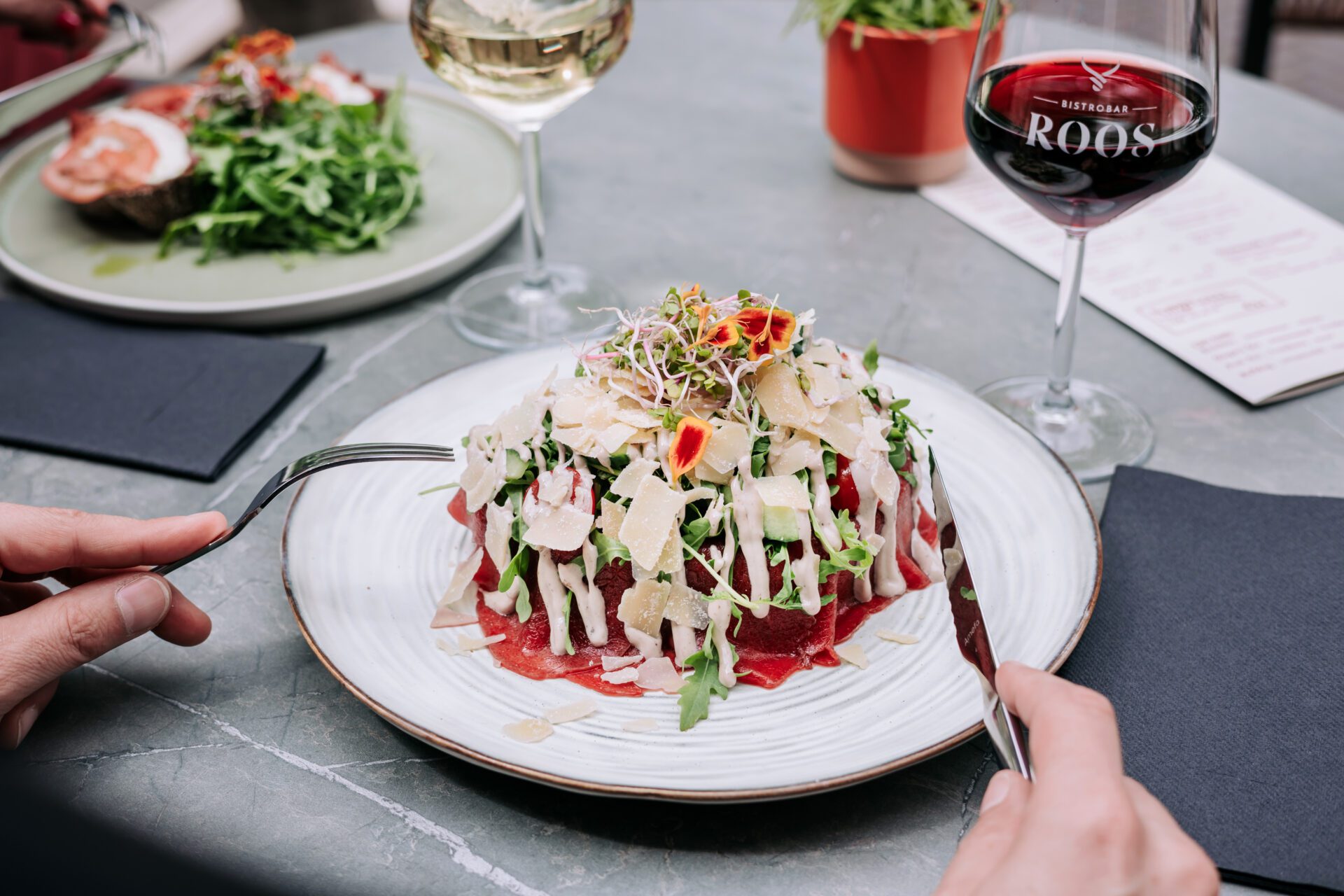 Een modern en warm restaurant in hartje Venray op het Schouwburgplein. Het pand is gelegen naast Slagerij Traiteur Angelique Leenders, waar de keuken elkaar verbind. Een plek waar vlees de rode draad is. Maar ook liefhebbers van vis of vegetarische gerechten vinden volop verrassende keuzes op onze kaart. Of je nu komt lunchen, dineren of borrelen; bij Bistrobar Roos draait alles om genieten in een warme, gastvrije sfeer!